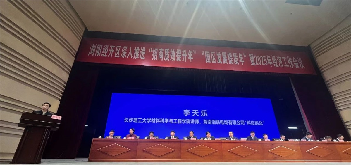 2月13日,瀏陽經開區召開深入推進“招商質效提升年”“園區發展提質年”暨2025年經濟工作會議,錨定“三高四新”美好藍圖,全面部署新一年高質量發展路徑。會上,湘聯電纜憑借在規模擴張、品牌升級、技術突破等領域的卓越表現,一舉斬獲“規模發展獎”“提質創牌獎”“創新發展獎”三大獎項。公司研發科技副總李天樂作為企業代表受邀登臺發言,分享企業創新驅動發展經驗。