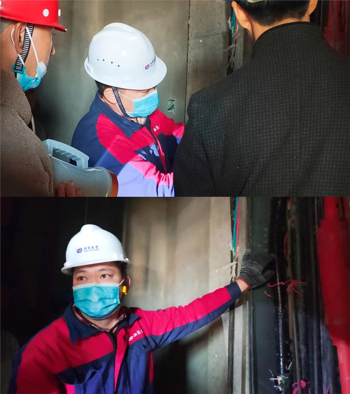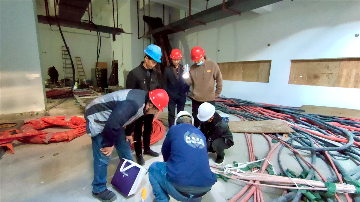 項目施工現場,湘聯電纜售后服務工程師同項目負責人認真查驗電纜損壞情況 ,全方位多層次分析給客戶提供解決方案。