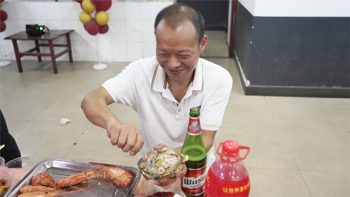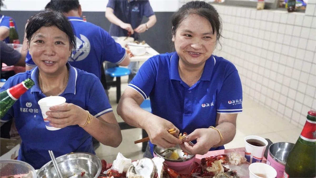 踏入餐廳,映入眼簾的是一盤盤美味的龍蝦、生蠔和飄香四溢的熱鹵、精致可口的小菜,還有清熱解渴的西瓜、冰鎮(zhèn)涼茶等。大家歡聚員工餐廳,圍桌而坐,歡聲笑語不斷,鮮嫩可口的海鮮在味蕾上綻放,一次次舉杯飽含喜樂、一聲聲歡笑傳遞幸福。