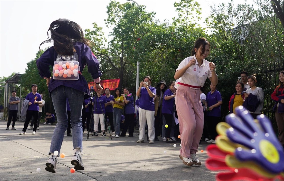 本屆運動會融合個人競技和團體競爭,設有無敵風火輪、摸石頭過河、投壺、公雞下蛋四個項目,運動形式活潑多樣,且兼顧技巧性,既能讓大家感受到運動的趣味性,又能增強大家的團隊協作精神。在運動場上,運動員們奮力拼搏,比技巧和默契,拼速度和協作,啦啦隊員們吶喊、歡呼,喝彩與掌聲此起彼伏,充分展現出湘聯電纜積極向上、朝氣蓬勃的風采。