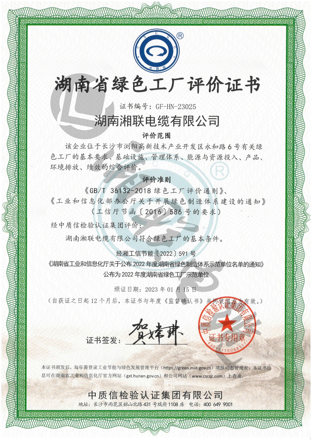 1月,湖南省工信廳公示了2023年湖南省綠色制造體系示范單位名單,湘聯(lián)電纜憑借綠色完善的體制機(jī)制獲評(píng)湖南省省級(jí)“綠色工廠”稱號(hào)。