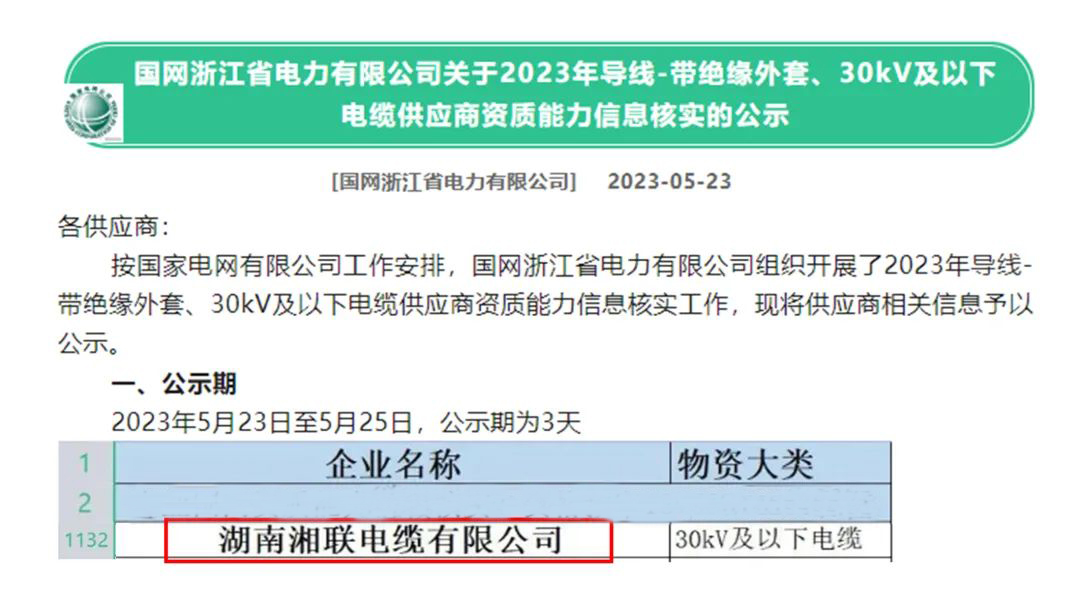 5月,憑借出色的產(chǎn)品品質(zhì)、優(yōu)質(zhì)的服務(wù)和良好的聲譽(yù),湘聯(lián)電纜通過(guò)了審查,成為2023年國(guó)網(wǎng)供應(yīng)商。