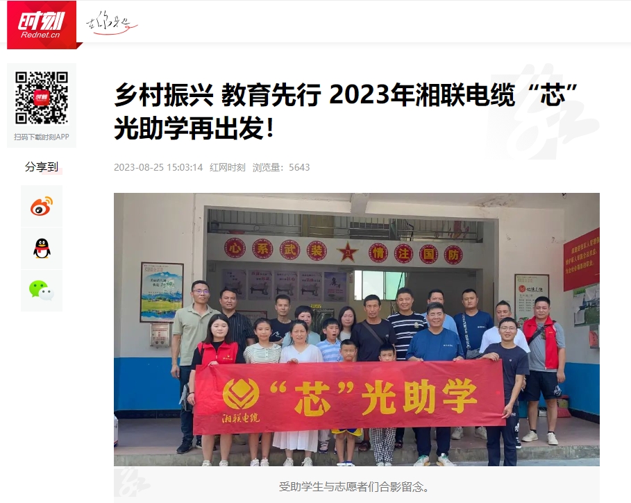 2023年,為增強(qiáng)員工的思想道德建設(shè),湘聯(lián)電纜有序開展公益助學(xué)、懷念袁隆平院士、關(guān)愛老人等活動(dòng),多次被瀟湘晨報(bào)、湖北新聞、紅網(wǎng)、澎湃新聞等知名媒體推薦報(bào)道。