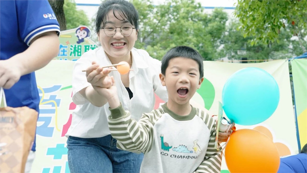 運動會后,小朋友們在“湘聯寶貝歡樂集市”領取了零食禮包和科普實驗套裝,孩子們捧著禮物,臉上洋溢著滿足與幸福。