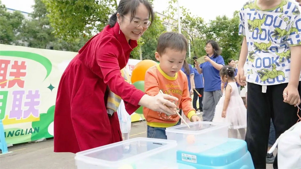 職工們陪著孩子們勇敢面對“萌雞下蛋”“踏石競渡”“童夢投壺”“筷運乒乓”等親子運動挑戰項目,共同協作并給予鼓勵,共同打造了一段歡樂的親子時光。趣味性的活動項目充分激發了孩子們積極挑戰、團結協作的體育精神,也提高了親子間的默契度。