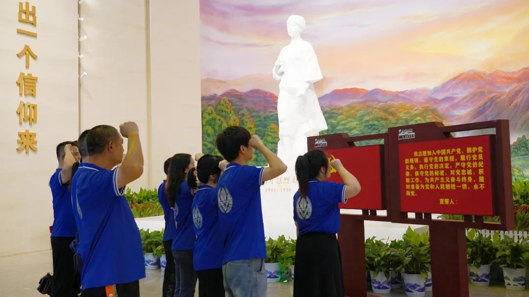 為了更深入地了解楊開慧烈士的英勇革命事跡,大家緊接著走進了楊開慧紀念館,在楊開慧烈士的雕像前,全體黨員面向黨旗,肅然站立,高舉右拳,重溫入黨誓詞,再次用錚錚誓言表達入黨初心。隨后,通過紀念館內豐富詳實的歷史資料,大家全面地追憶了楊開慧烈士的生平事跡。伴隨著講解員的深情講述,大家仿佛穿越時空般,親身感受到楊開慧烈士29年的壯麗人生,無私無畏、崇高的革命情懷。